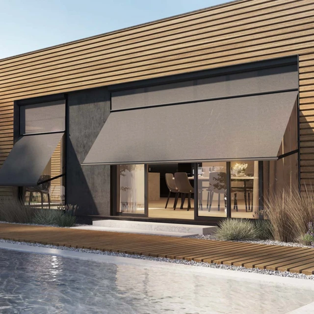 La combinaison d'un store et d’un store a projection constitue une protection fiable contre le soleil tout en étant un élément décoratif pour la façade.